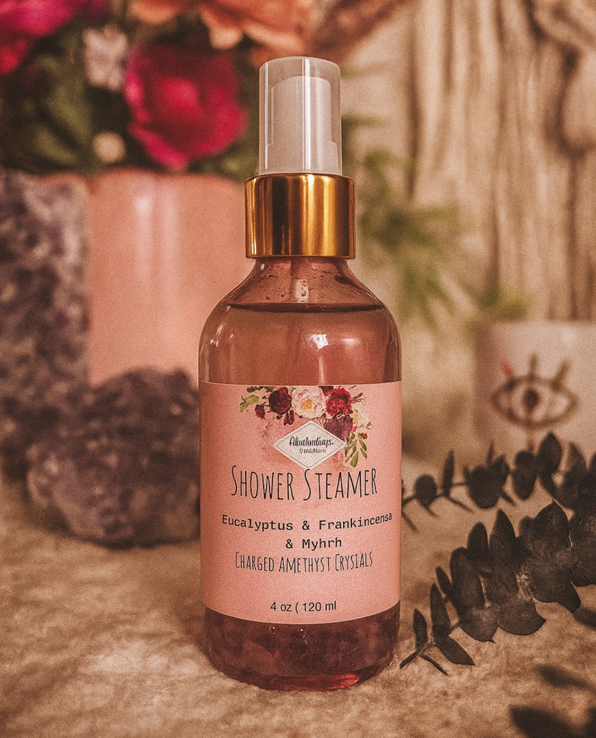I absolutely love to spritz the shower head area before I get into the shower, I also keep eucalyptus in the shower and spritz that down aswell. While standing under the warm water I like to close my eyes and just absorb the healing elements. Focusing on clearing my thoughts and energy for a fresh start to a magnificent day or to ensure the best quality sleep I can possibly get. Essential to my mental health and wellbeing 🖤