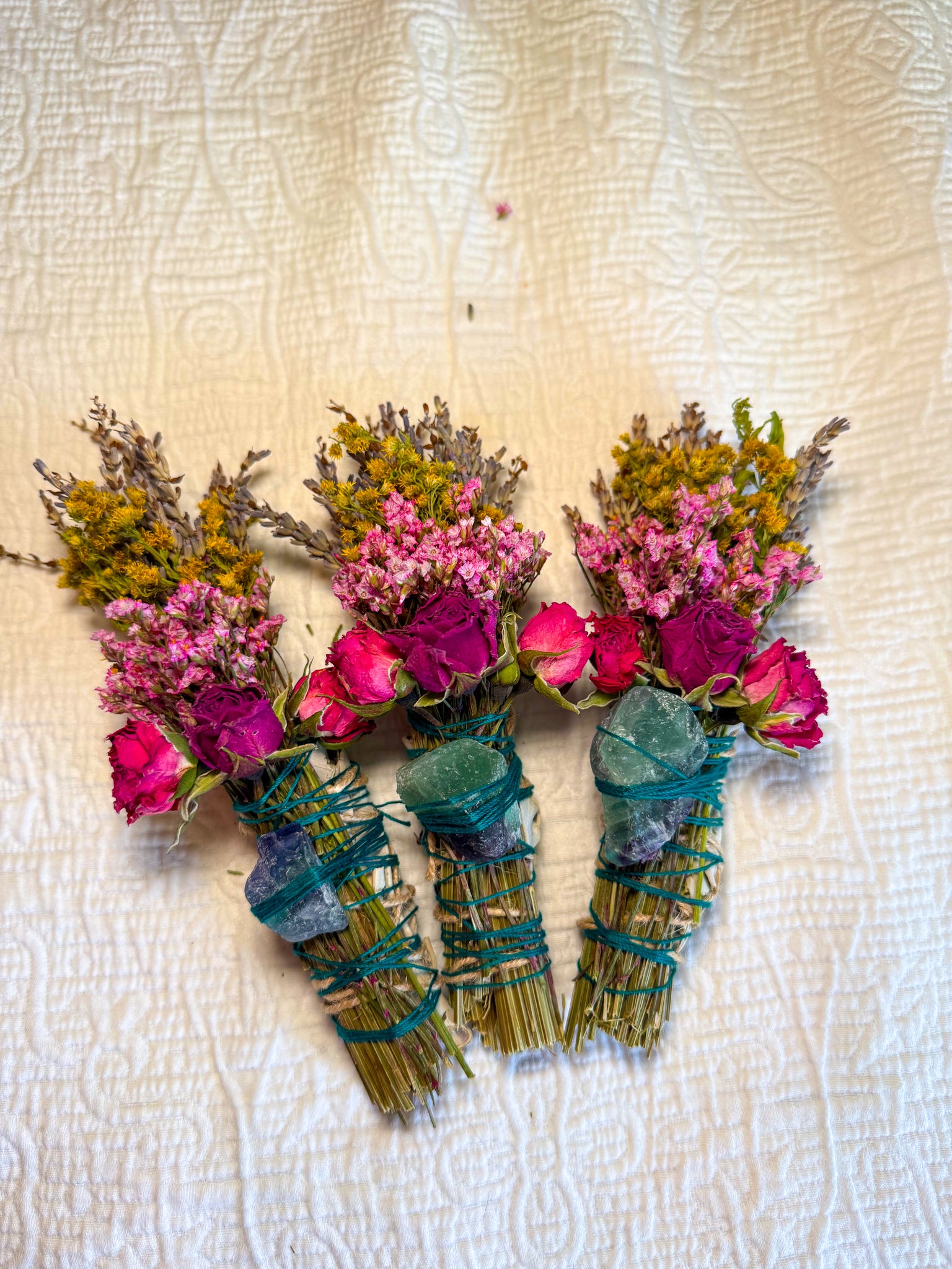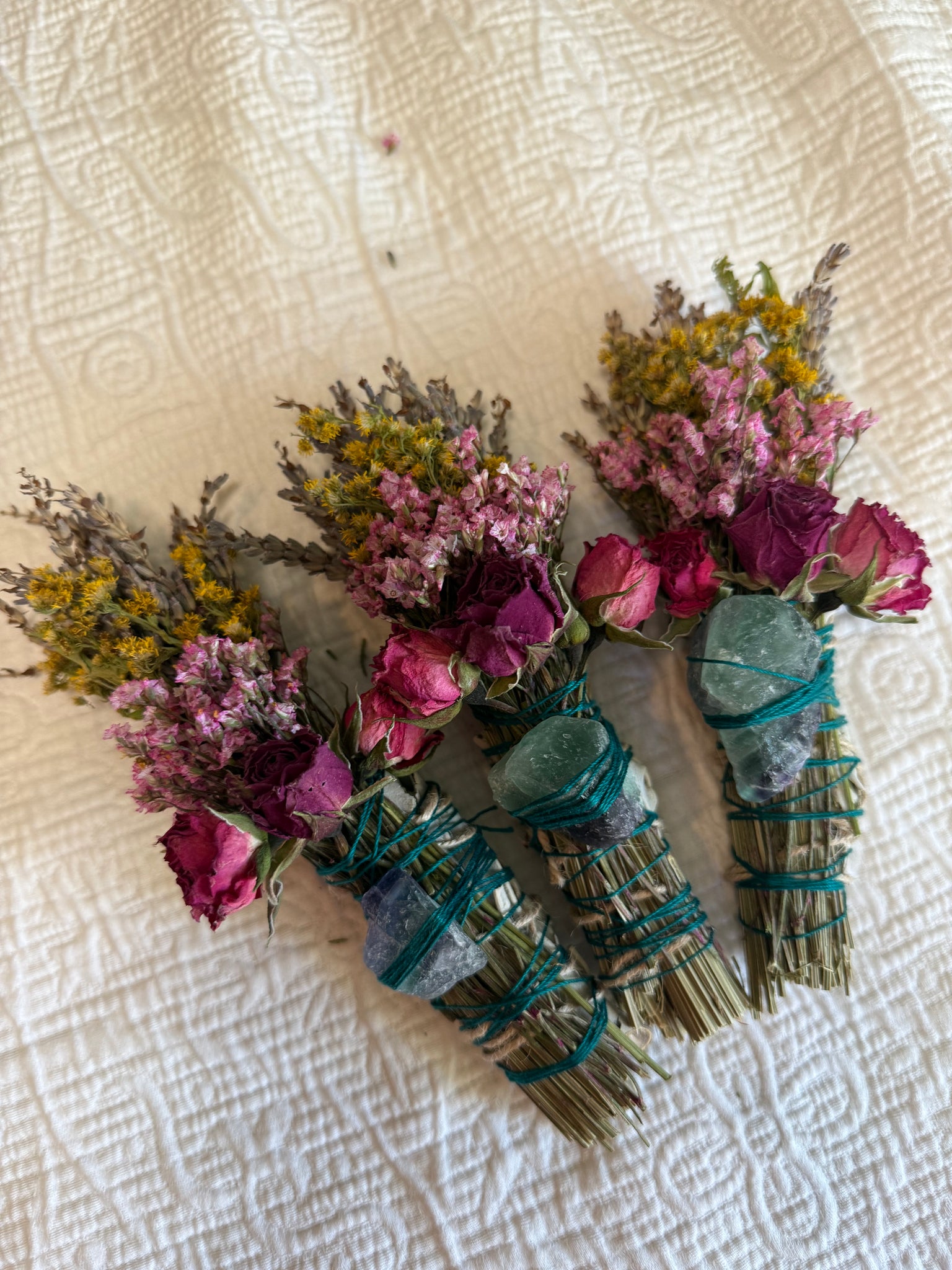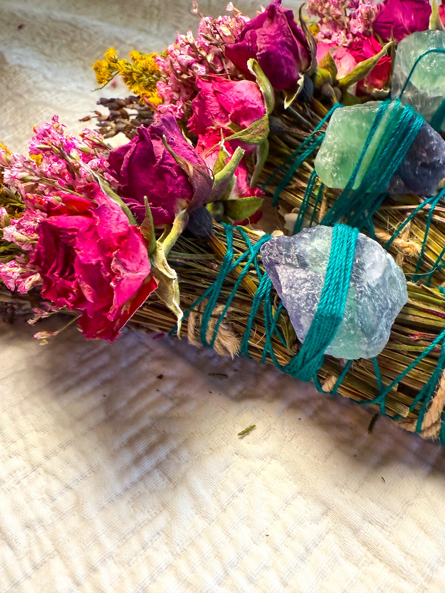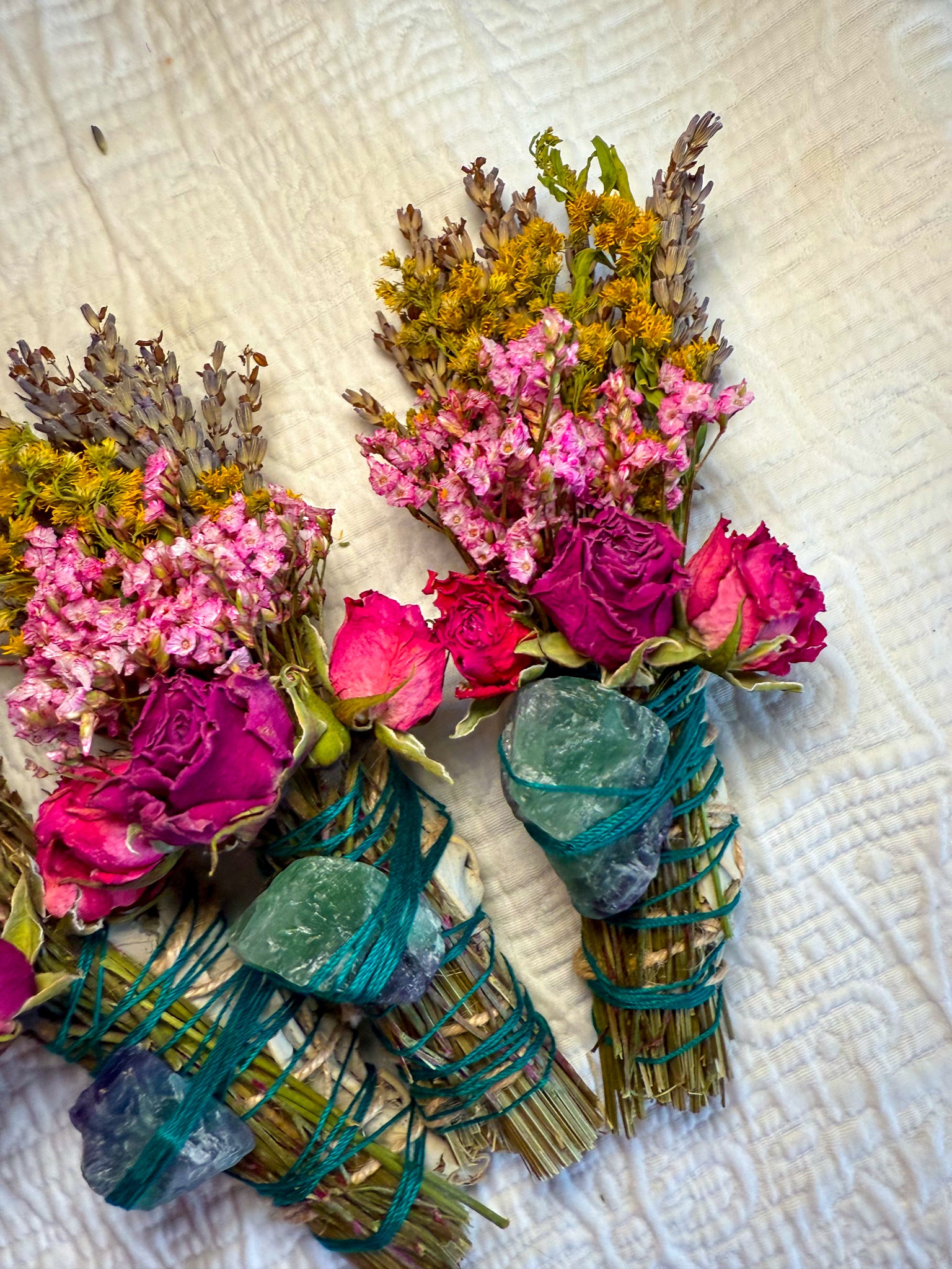 Mother Nature varies—and so do her creations. Each smudge stick and fluorite crystal will differ slightly in color, size, and texture, making your bundle truly one of a kind.