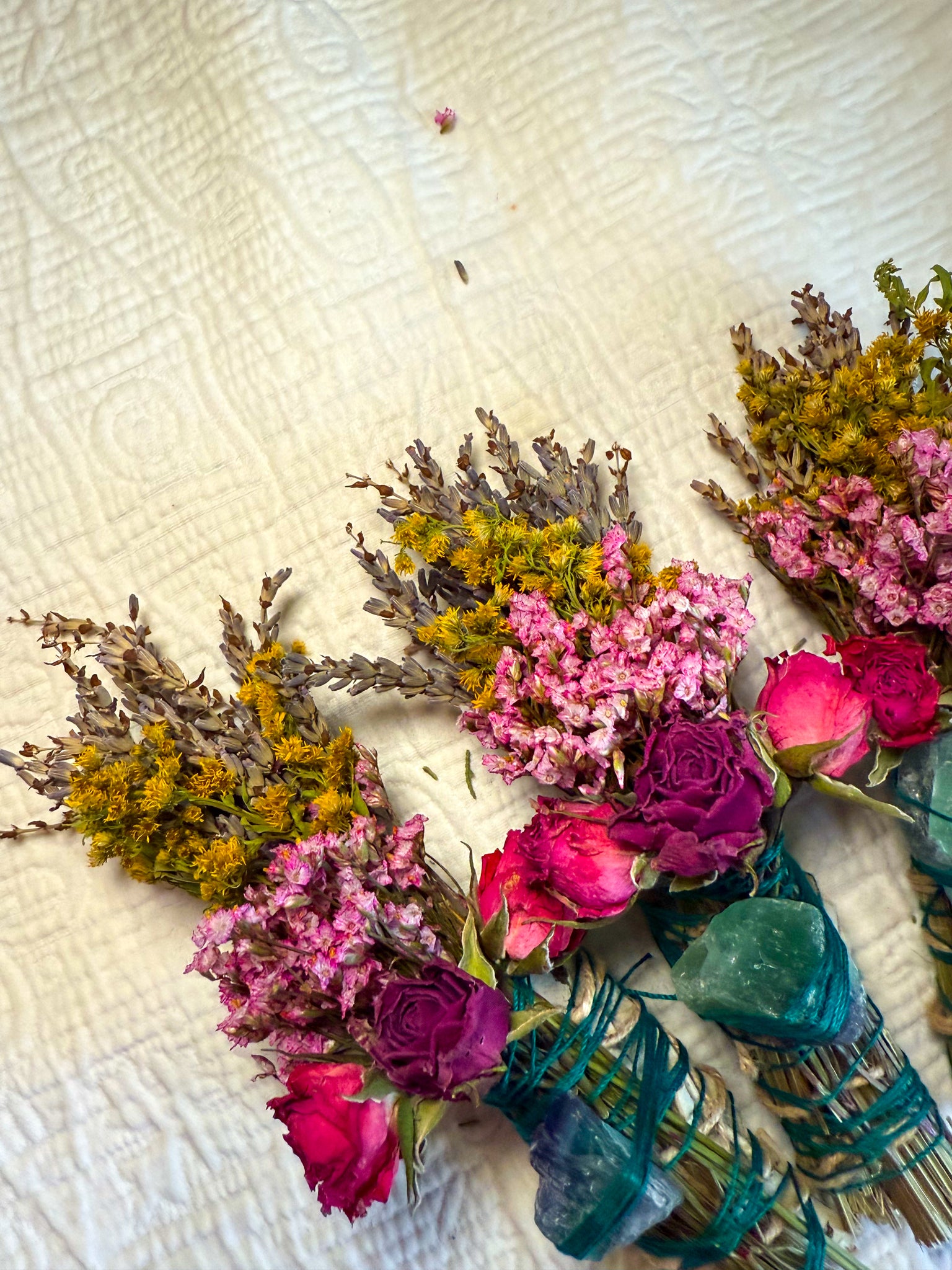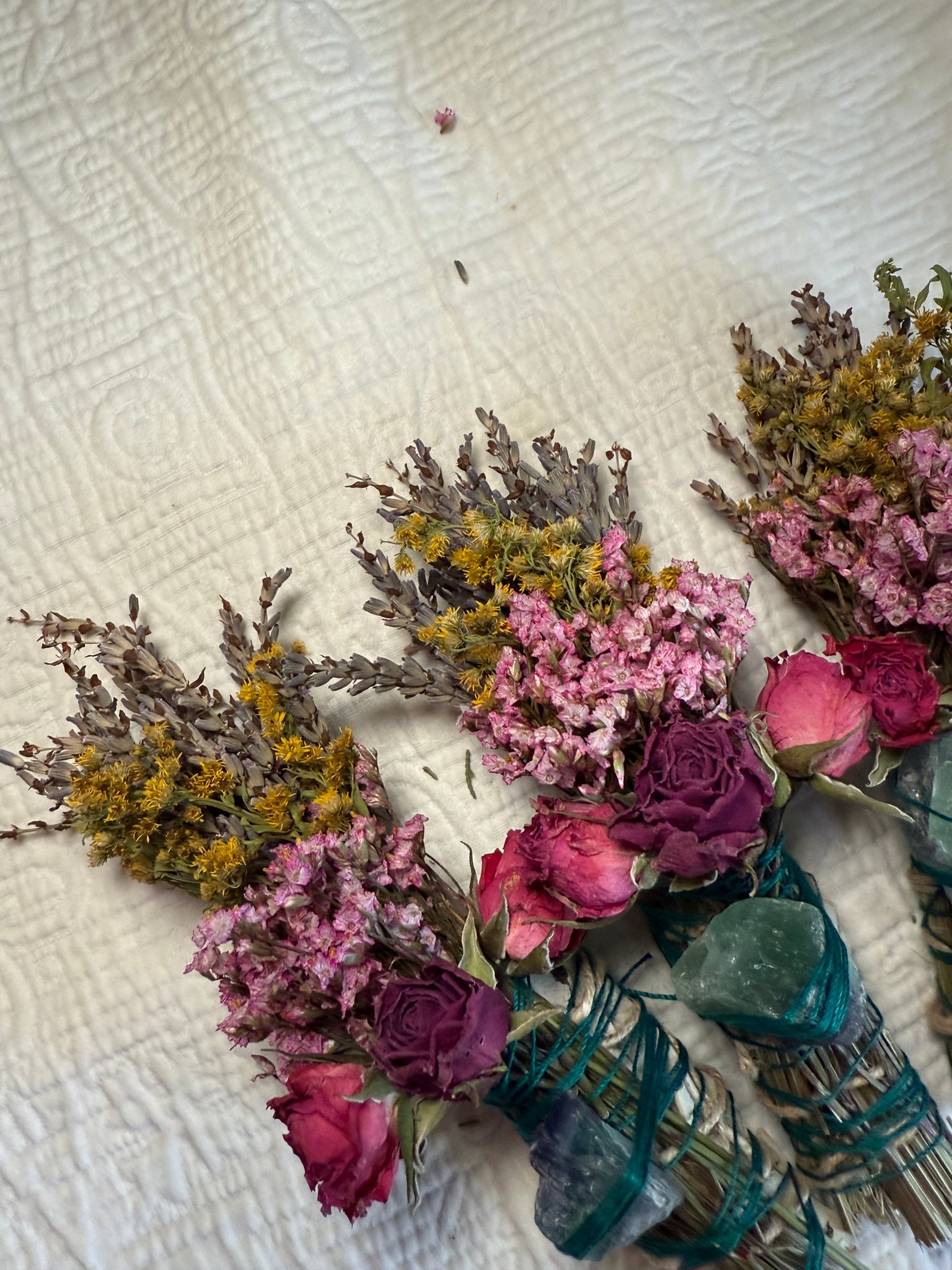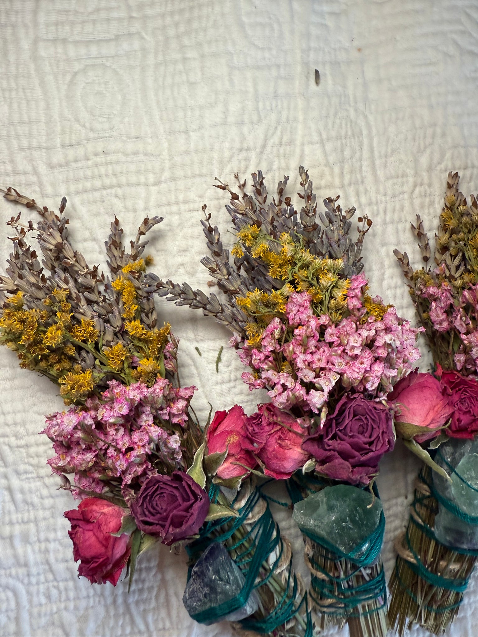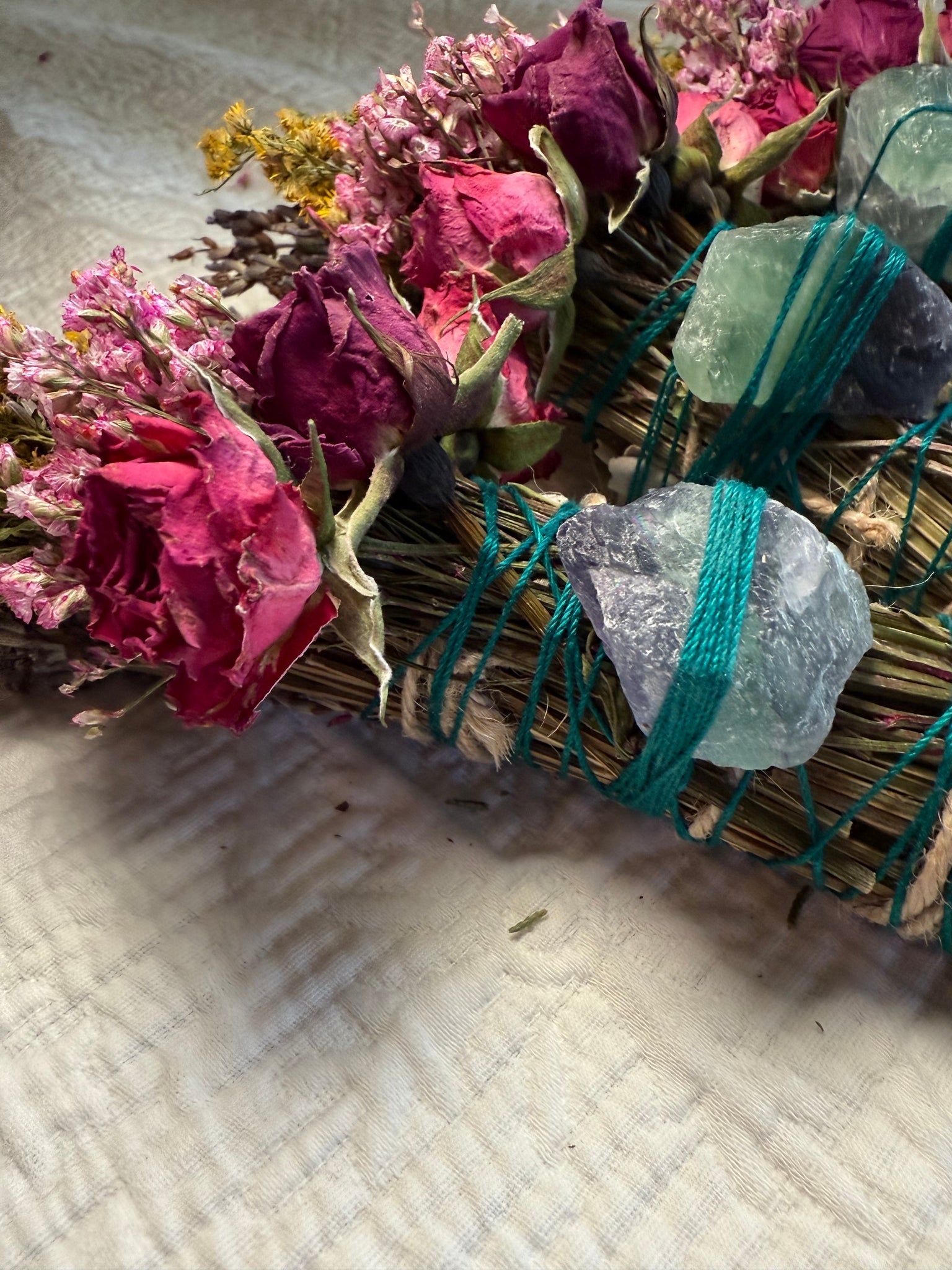 Mother Nature varies—and so do her creations. Each smudge stick and fluorite crystal will differ slightly in color, size, and texture, making your bundle truly one of a kind.